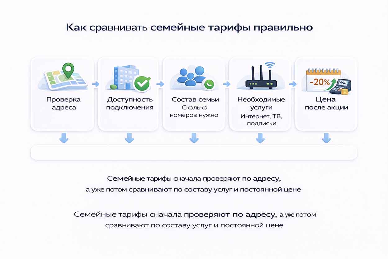 Как выбрать лучший семейный тариф с домашним интернетом и мобильной связью в Москве: сравнение операторов, число номеров, ТВ, скрытые условия, проверка адреса и стоимость после акции.
